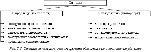 7. Какие основные санкции предъявляются к продавцу и покупателю за невыполнение сторонами обязательств?