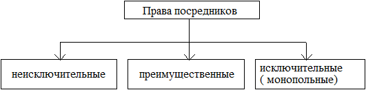 Неисключительные права – право производителя (поставщика) выбрать другого контрагента. У производителя (поставщика) широкая свобода действий. У посредника слабая заинтересованность в рекламе, маркетинге, завоевании рынка такого производителя (поставщика).