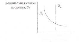 Кривая предложения денег имеет форму вертикальной прямой при допущении, что центральный банк, контролирующий денежное предложение, стремится поддерживать его на фиксированном уровне независимо от изменений номинальной процентной ставки (рис. 2).