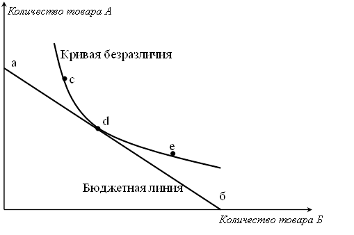 (с, d, е- альтернативные соединения единиц товара а и б, дающих одинаковое удовлетворение потребителю).