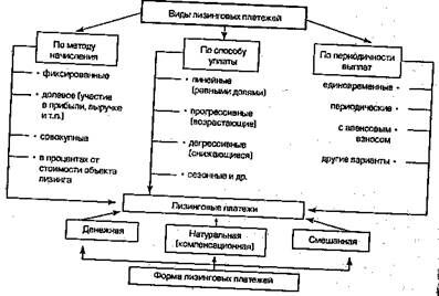 Следует различать виды лизинговых платежей как способ их осуществления и формы, т.е. внешнее материально-вещественное или стоимостное воплощение платежей (схема 6).