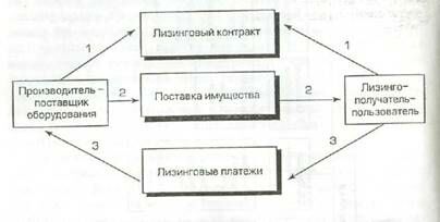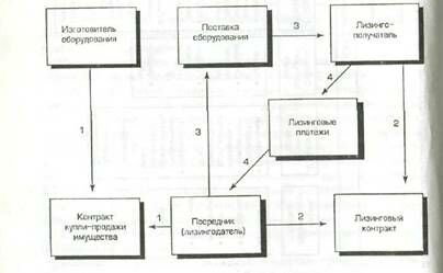 В основе большинства лизинговых сделок лежит процедура косвенного лизинга, который во многом похож на продажу товара в рассрочку Посредник, он же лизингодатель, а в упрощенном случае и заимодатель, сначала финансирует покупку средств производства изготовителя и поставляет их пользователю (арендатору), а затем периодически получает лизинговые платежи от арендатора. В косвенном лизинге участвуют как минимум три лица: промышленное предприятие, лизинговая компания и арендатор, но он может включать и большее число участников.