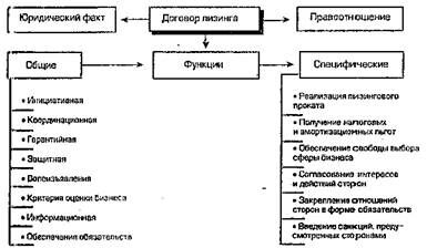 Лизинговое соглашение, как и любой хозяйственный договор, выполняет сложные и многообразные функции, которые можно объединить в две основные группы: общие и специфические (схема 10).