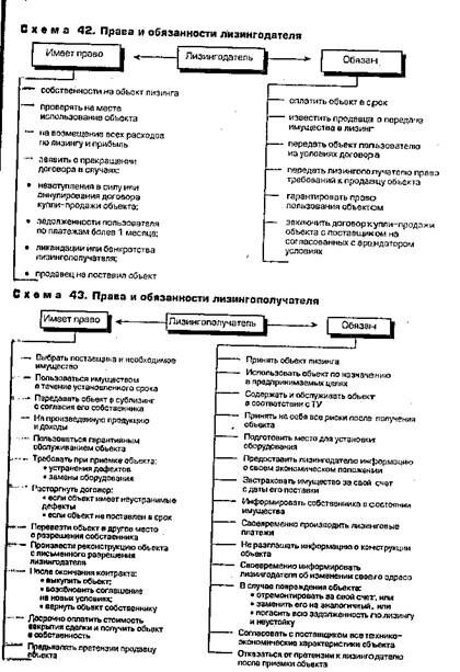 Кроме индивидуально устанавливаемых норм, многие правовые положения, вытекающие из особого, законом освещенного статуса лизингодателя и лизингополучателя, имеют универсальный характер и могут быть рекомендованы для более широкого применения (схемы42,43).