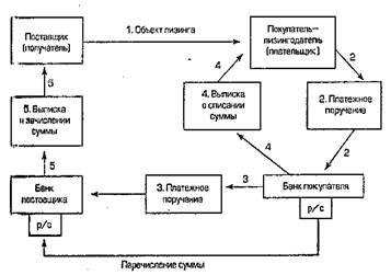 В правильно составленном договоре необходимо установить не только цену сделки, но и порядок взаимных расчетов между партнерами по лизингу. В современной практике кроме расчета наличными существует несколько форм безналичных расчетов. Стороны договора могут предусмотреть любую (схемы 25, 26, 27, 28, 29).