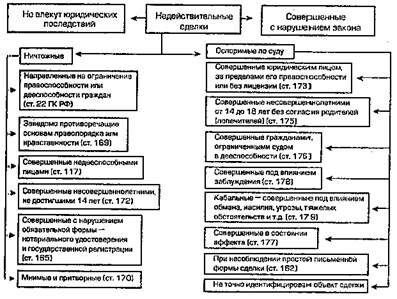 Все остальные сделки, не отвечающие указанным требованиям, считаются недействительными. Они подразделяются на две группы: ничтожные и оспоримые (схема 12).