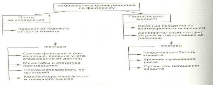 Комиссионное вознаграждение факторинговой компании складывается из двух элементов: платы за обслуживание, платы за предоставленные в кредит средства.