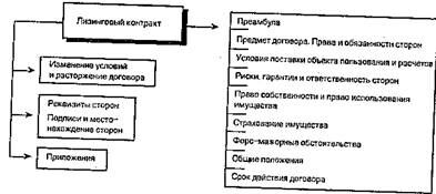 В зависимости от вида лизинга структура договора может варьировать, однако практически любой лизинговый контракт в той или иной форме должен включать в себя следующие пункты (схема 14).
