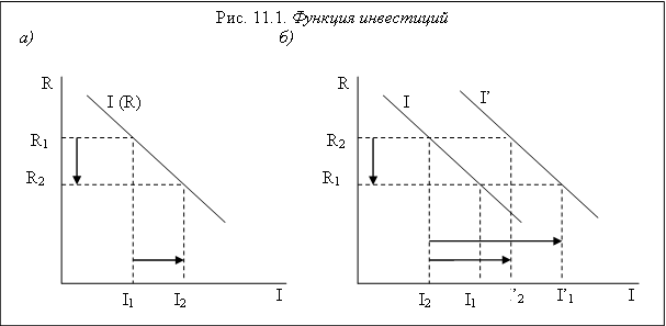 Кривая совокупного инвестиционного спроса (рис.11.1.(а)) отражает эту обратную зависимость вели-чины спроса на инвестиции от ставки процента.