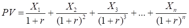 где Х1,......Хn – чистый доход от инвестиций в году 1, .... n, а r – норма дисконта (норма предпочтения будущих доходов доходам в настоящем).