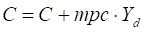 Предельная склонность к потреблению (marginal propensity to consume – mpc) – это коэффициент, который показывает, на сколько увеличится (уменьшится) потребление при росте (сокращении) дохода на единицу: