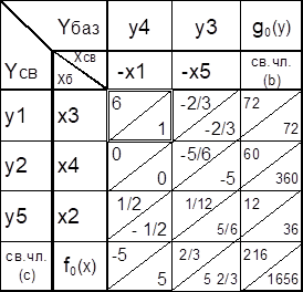 | -1/12 | x2 | Если добавить единицу 2-го ресурса, то П2 уменьшится на 1/12 |