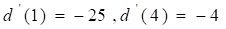 . Определим скорость изменения спроса, когда цена на товар составляет 1 ден.ед., 4 ден. ед.