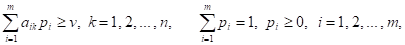 Из теоремы о свойствах оптимальных смешанных стратегий игроков вытекает, что при любой чистой стратегии Вk игрока В, k = 1, 2, ... , n, оптимальная смешанная стратегия Р = {p1, p2, … , pm} игрока А обеспечивает его средний выигрыш, не меньший v. Иными словами, выполняются соотношения