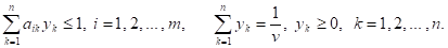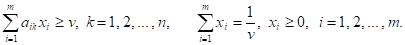 Без ограничения общности будем считать, что все элементы матрицы А положительны (этого всегда можно добиться, пользуясь аффинным правилом, преобразующим заданную матрицу игры, но не изменяющим оптимальных смешанных стратегий игроков). Тем самым, искомая цена игры v — положительное число.