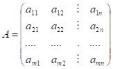 Если нам известны значения аik выигрыша при каждой паре стратегий (в каждой ситуации) { Ai, Вk }, i = 1, 2,..., m, k = 1, 2,..., n, то их удобно записывать или в виде прямоугольной таблицы, строки которой соответствуют стратегиям игрока А, а столбцы – стратегиям игрока В: