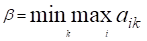 Поскольку игрок В стремится сделать свой гарантированный проигрыш минимально возможным, то задача отыскания решения матричной игры сводится к следующей задаче: