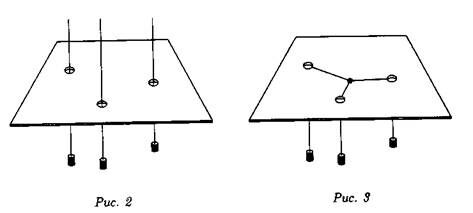 Наклеим карту местности на лист фанеры. Затем в месте нахождения каждого города пропилим сквозные отверстия, пропустим через них нити и привяжем к ним грузики, пропорциональные запросам товаров в этот город (рис. 2). Свяжем свободные