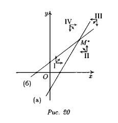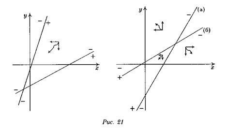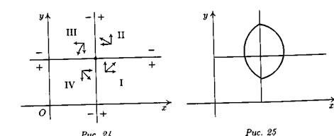 из которых следует, что скорости х' и у' в этой точке положительны и, значит, обе величины (х и у) должны возрастать (рис. 20).