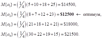 Используя подходящее значение для α, можно определить оптимальную альтернативу. Например, при α =0.5 оптимальными являются либо альтернатива а1 либо а2, тогда как при α = 0.25 оптимальным является решение а3.