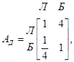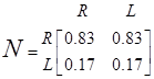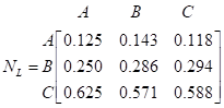 При делении элементов каждого столбца матриц AR и AL на сумму элементов этих же столбцов получаем следующие нормализованные матрицы.