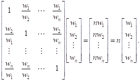 где w – вектор-столбец относительных весов wi , i= 1, 2,..., n.