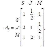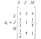 1. Отдел кадров фирмы сузил поиск будущего сотрудника до трех кандидатур: Стив (S), Джейн (J) и Майса (М). Конечный отбор основан на трех критериях: собеседование (С), опыт работы (О) и рекомендации (Р). Отдел кадров использует матрицу А (приведенную ниже) для сравнения трех критериев. После проведенного собеседования с тремя претендентами, сбора данных, относящихся к опыту их работы и рекомендациям, построены матрицы Ас, Ао и Ар. Какого из трех кандидатов следует принять на работу? Оцените согласованность данных.