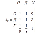 Элементы матриц AR и AL, определены на основе суждений Мартина, касающихся относительной важности трех университетов.