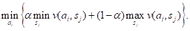 | Альтернатива | Минимум строк | Максимум строк | α (Минимум строки) + (1– α) (Максимум строки |