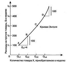 Заметим, что кривые Энгеля схожи с кривыми спроса, поскольку они изображают соотношение между важным фактором, влияющим на спрос, и количеством приобретаемых благ.