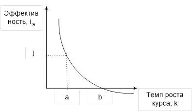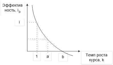 Изобразим графически зависимость эффективности операции iЭ от темпа изменения обменного курса k (рис. 4). С ростом k эффективность операции снижается.