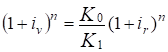 kmax = (1 + ir)n / (1 + iv)n K1max = K0 (1 + ir)n / (1 + iv)n |