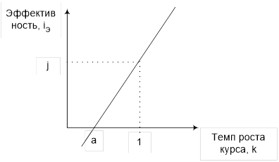 Изобразим графически зависимость эффективности операции iЭ от темпа изменения обменного курса k (рис. 5). С ростом k эффективность операции повышается.