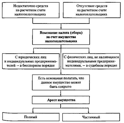 · приостанавливать операции по счетам налогоплательщиков в банках и налагать арест на имущество налогоплательщиков в порядке, предусмотренном НК РФ (операции по счетам приостанавливаются чаще всего в случае непредставления налоговых деклараций в срок, установленный законом, или в качестве одной из мер, обеспечивающих поступление налогов в бюджеты всех уровней; в случае непредставления декларации в установленный срок операции по счету приостанавливаются до момента ее представления; арест на имущество налагается в случаях, предусмотренных налоговым законодательством);