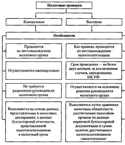 Особенности камеральных и выездных налоговых проверок показаны на схеме.