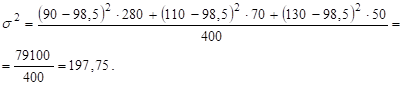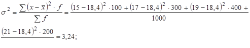 В тех случаях, когда варианты выражаются небольшими и немногозначными числами, дисперсия может быть найдена как разность между средним квадратом и квадратом средней величины: