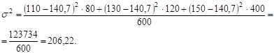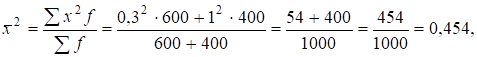 Например, на станках-автоматах отработано 600 деталей, причем на каждую деталь затрачивалось 0,3 часа, а на обычных станках отработано 400 деталей при трудоемкости одной 1 час. Найдем дисперсию затрат труда на одну деталь:
