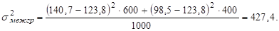 Между групповой и общей средней можно исчислить показатель вариации, где групповые средние рассматриваются как индивидуальные значения совокупности, это межгрупповая дисперсия: