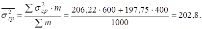 Средняя дисперсия из групповых вычисляется как средняя взвешенная величина, в качестве веса берется численность каждой группы (