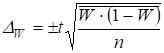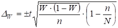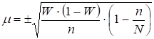 При установлении колеблемости доли, как и средней, в первую очередь надо попытаться найти ориентировочные данные о величине W. Если таких данных нет, то берется максимальная величина произведения W на (1-W). Эта величина равна 0,25.