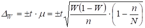 – доля единиц , обладающих данным признаком в выборочной совокупности.
