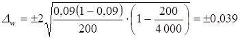 Второй пример. в 3%-ной выборке численностью 150 светильников 6 светильников оказались бракованными (ошибка выборки