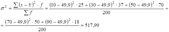 2. Расчет среднеквадратического отклонения может быть основан на той связи, которая существует между показателями средней арифметической и коэффициентом вариации. Практика показывает, что во всех более или менее однородных совокупностях коэффициент вариации колеблется в пределах от 25-35%. Иначе говоря, коэффициент вариации обычно приблизительно равен