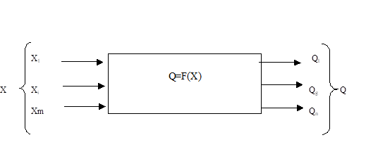 Фундаментальная роль фирм в экономике состоит в производстве товаров и услуг, поэтому производственно-технологический подход к фирме является одним из центральных при рассмотрении фирмы. Согласно этому подходу фирма рассматривается как система, осуществляющая преобразование исходных факторов X в продукцию Q по технологическому способу F (рис 2.1) и описывается производственной функцией: Q= F (X).