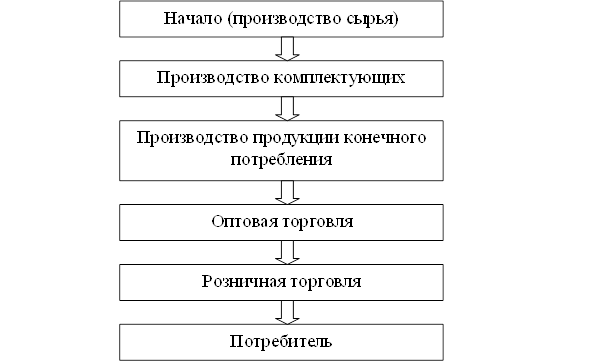 2. Интеграция - это сосредоточение на фирме смешных стадий производственной цепочки (рис. 2.3) При этом фирма выбирает между покупкой на рынке и производством внутри фирмы продуктов последовательных стадий (например, комплектующих) производства и реализации продукции. Фирме целесообразно осуществлять интеграцию, если издержки при их совокупном производстве будут меньше, чем при их покупке.