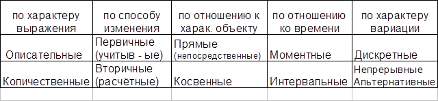 Вторичные (расчётные) – не измеряются непосредственно, а рассчитываются на основании первичных признаков (производительность труда).