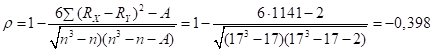 Используем следующую формулу, т.к. есть «связные» ранги: