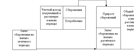 Интенсивность процессов формирования сбережений в экономике страны связана с распределением полученного в определённом периоде чистого дохода в обществе на потребление и накопление: