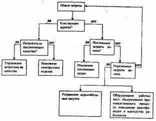 Стратегический анализ общих затрат необходим тогда, когда полные издержки по производству и доведению товара до потребителя представляют собой объект повышения конкурентоспособности хозяйствующего субъекта. На рис. 9.1 в общем виде изображена схема проведения стратегического анализа совокупных затрат предприятия, которая представляет собой видоизмененную ветвь диаграммы, предложенной японским консультантом Р. Омаэ (Ohmae) для проведения управленческого анализа.