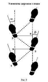 Дорожка следов ног. В дорожке следов ног отображаются особенности походки, в элементах которой проявляются анатомические и функциональные признаки человека. Так, у переутомленного, больного или раненого человека элементы дорожки следов существенно варьируют, так как ему трудно выдерживать одинаковый ритм движения. Выяснить по следам темпы ходьбы или бега можно только тогда, когда есть несколько следов, составляющих дорожку (см. рис. 9).